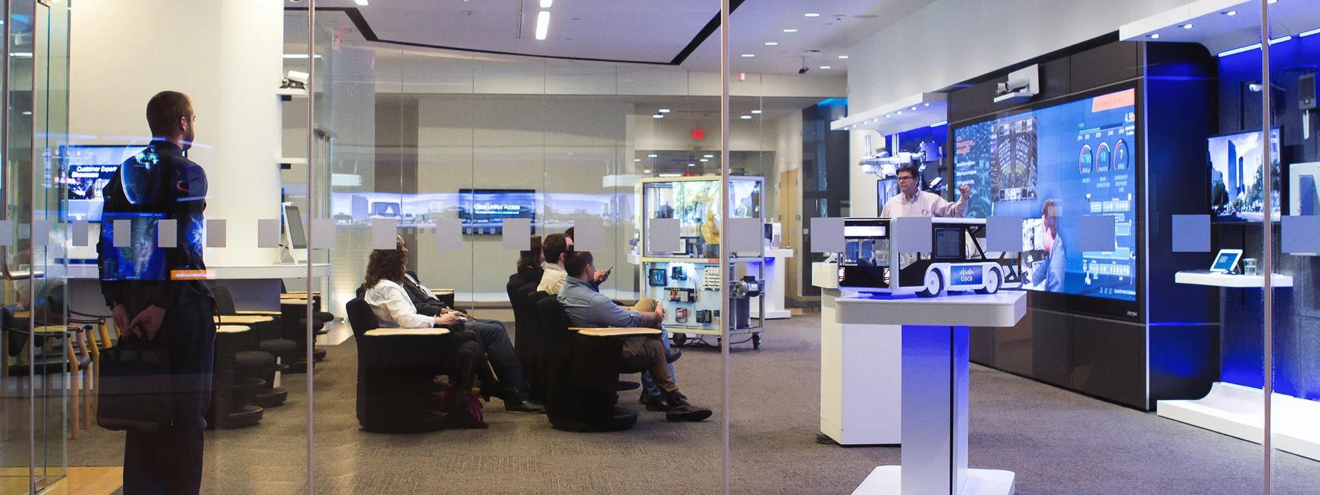 Bring to life specific industry use cases inside an Executive Briefing Center. To simulate the real experience, we created an interactive demo on a large video wall. To make it more immersive, we programmed the wall to drive interactions throughout the space. Project required coordinating among many stakeholders, product experts, marketing and solutions groups.